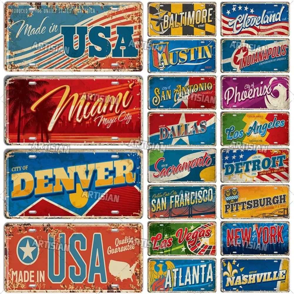 USA License Plate Landmark Metal Wall Sculpture|US City/State Design,Tin Plaque,Halloween&Christmas Gift,Garage/Bar/Cafe Decor