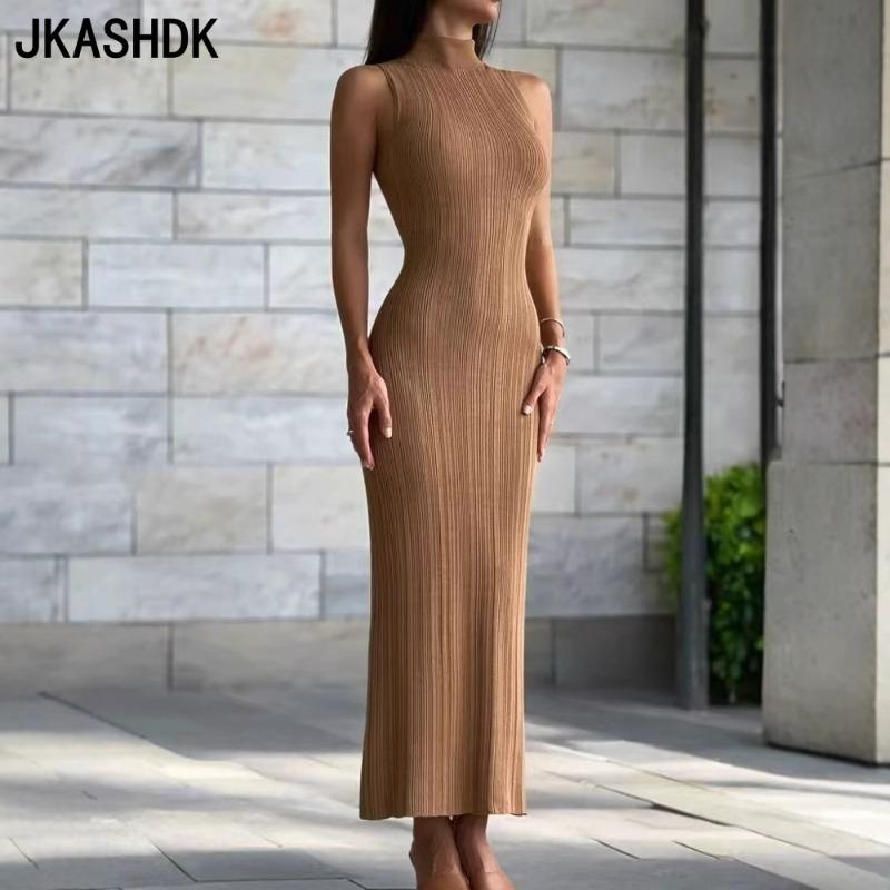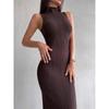 JKASHDK Damenmode, Sommer, Frühling, einfarbig, ärmellos, halber Rollkragen, hohe Taille, Freizeitkleider