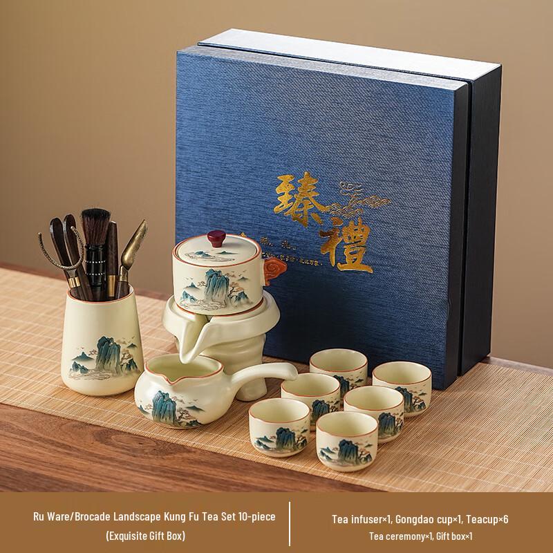Splendid Mountains & Rivers Ru Kiln Automatic Ceramic Tea Set