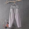 Neue Baumwollleinen Freizeithose Damen Sommer Lockerer Schnitt Gerades Bein Weites Bein Neun-Punkt Haremshose Slim Fit Trendy