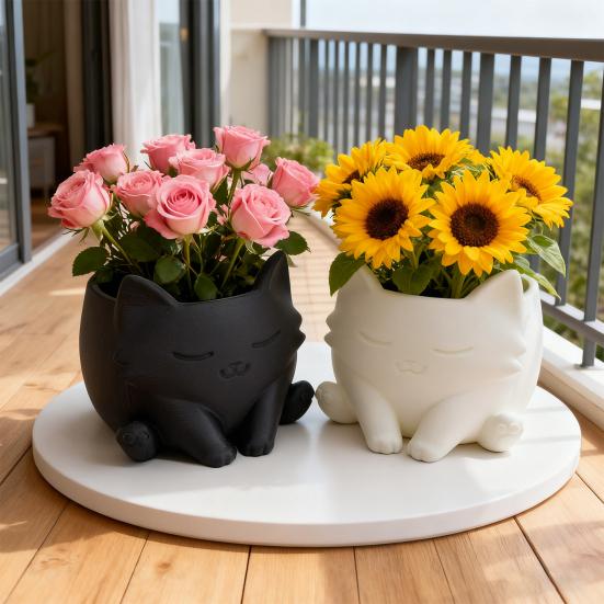 Das clevere Design dieses Blumentopfs ermöglicht das einfache Einpflanzen Ihrer Lieblingspflanzen oder das Ausstellen von Dekorationsartikeln.. In Form einer entzückenden Katze gefertigt, verleiht es jeder Tischgarten- oder Balkonszenerie eine einzigartige Note.. Unter Verwendung feiner 3D-Drucktechnologie besticht die lebensechte Katzenform durch filigrane Details und bringt Charme und Verspieltheit in Ihren Innen- oder Außenbereich.