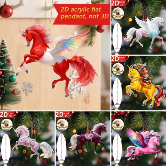 Pferdeornament 2D Acryl Pferd Auto Rückspiegelanhänger Flacher Weihnachtsbaumanhänger Auto Innenraum Hängedekoration für Frauen Mädchen