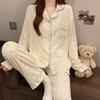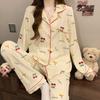 Damen Pyjama Loungewear Set Mädchen Liebe Cardigan Pyjama Knitterstoff Loungewear Langarm Set