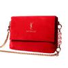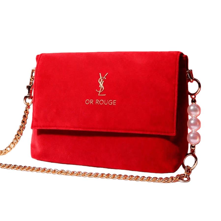 YSL Red Christmas Handbag, Shoulder Bag/Crossbody Bag with Gold Logo, Flap Closure, Luxurious Holiday Makeup Bag, Women's Christmas Gift