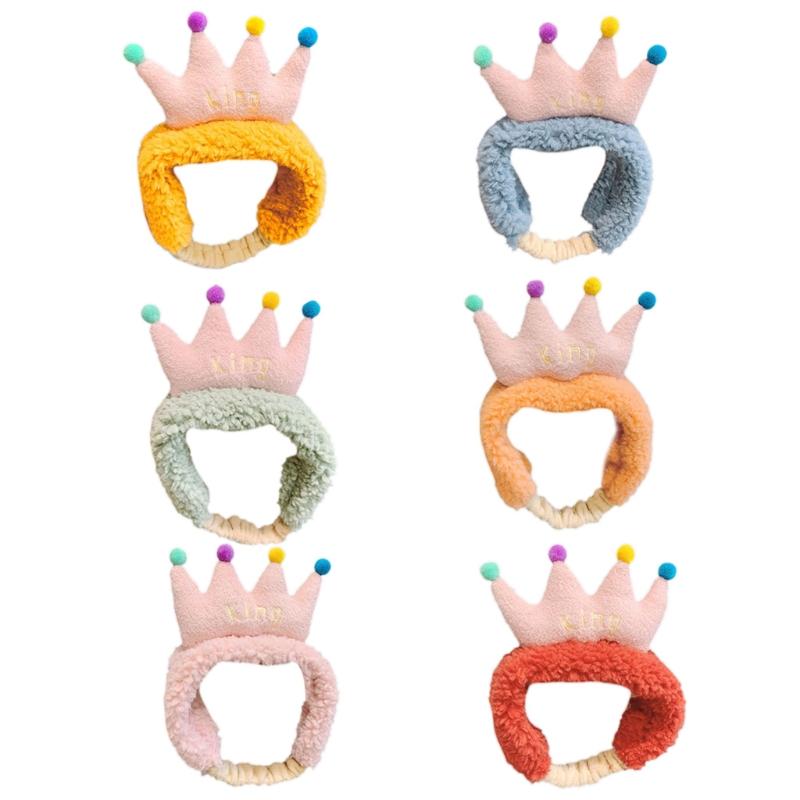 Plush Colorful Crown Hairband Soft Spa Headbands Elastic Furry Turban Non-slip Headwrap for Washing Face Makeup Tool