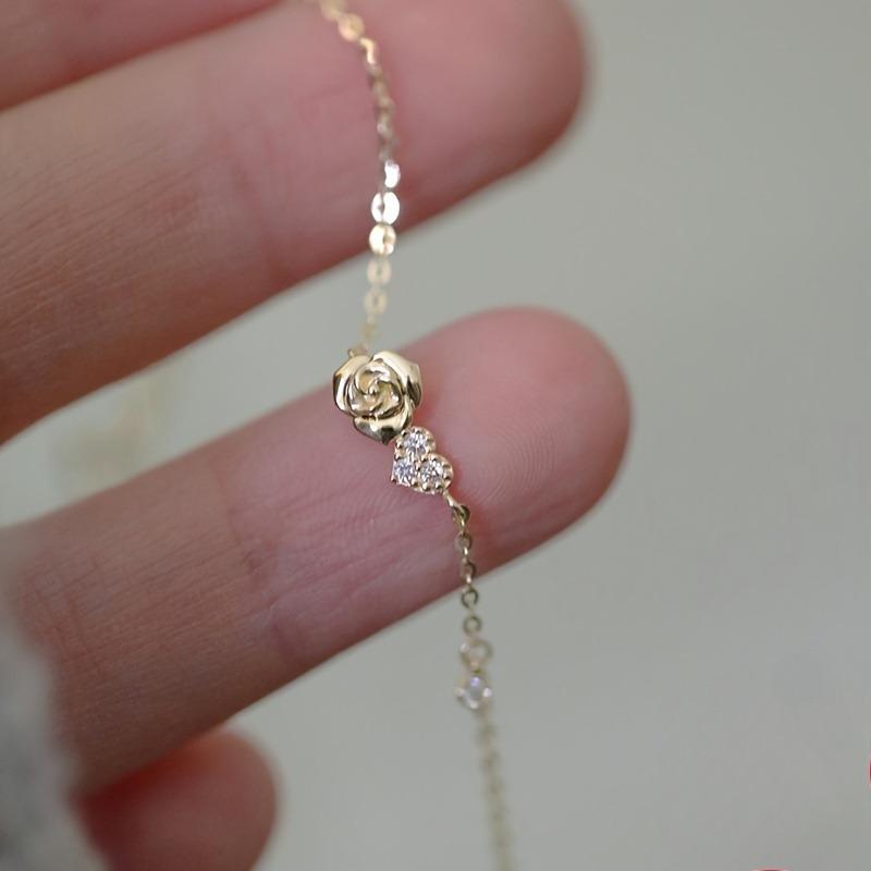 Luxus Zirkonia Herz Rose Blume Armbänder Für Frauen Niedliche Pflanze Feiner Schmuck Zubehör Romantische Liebe Flash Geschenke