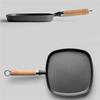 Gusseisen Quadratische Grillpfanne mit Holzgriff, Grillpfanne für Herdplatten, Langlebige Bratpfanne zum Grillen im Innen- und Außenbereich
