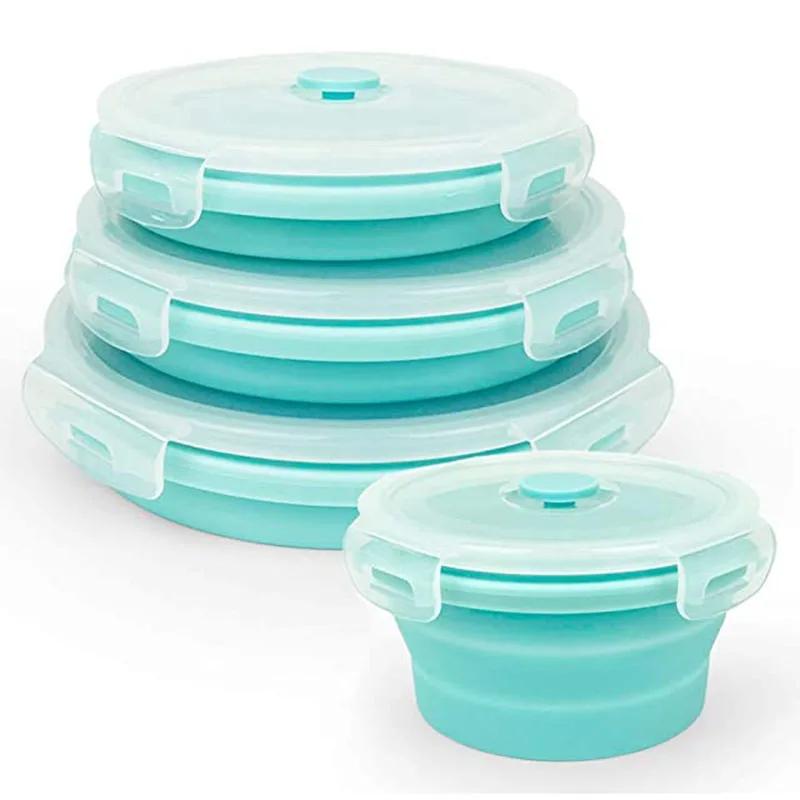 3/4 Stück faltbare runde Silikon-Lunchbox, tragbare Bento-Lunchbox, Mikrowellen-faltbarer Lebensmittel-Obstbehälter, Schüssel