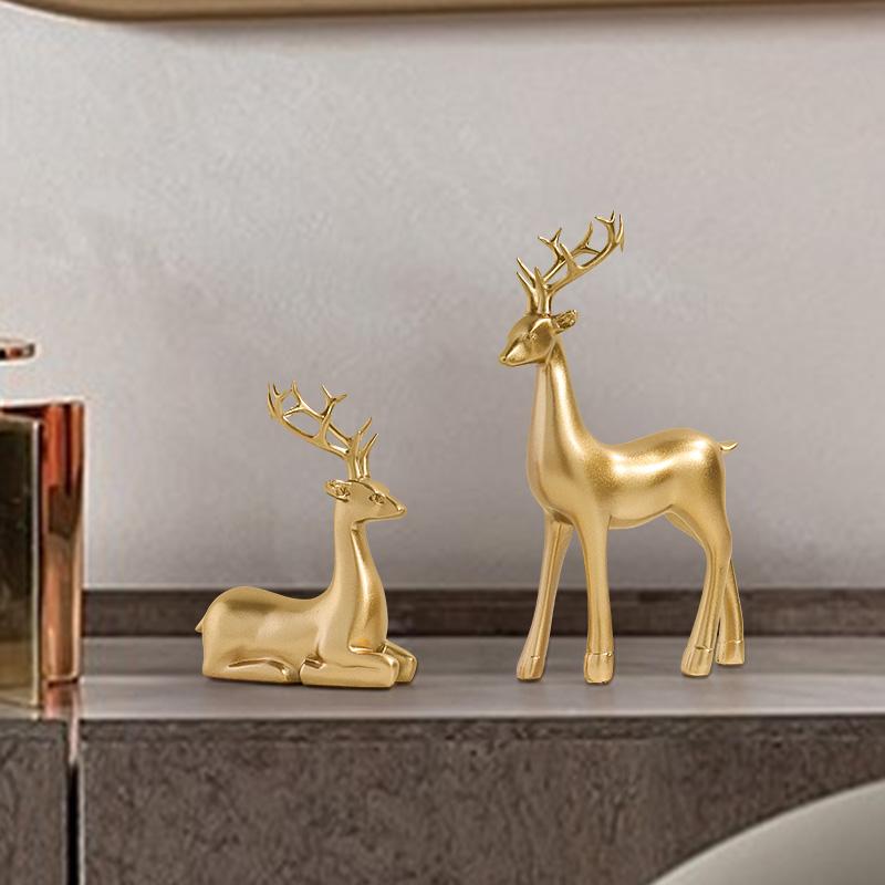 Ein Paar Weihnachtsrentierstatuen, Mini-Hirschfiguren im europäischen Stil zur Dekoration von Schlafzimmer, Wohnzimmer, Arbeitszimmer und TV-Schrank