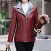BITCED PU Leather Jacket Casual Plus Size Fleece-Lined Thickened Middle-Aged and Elderly Leather Jacket