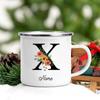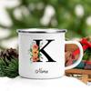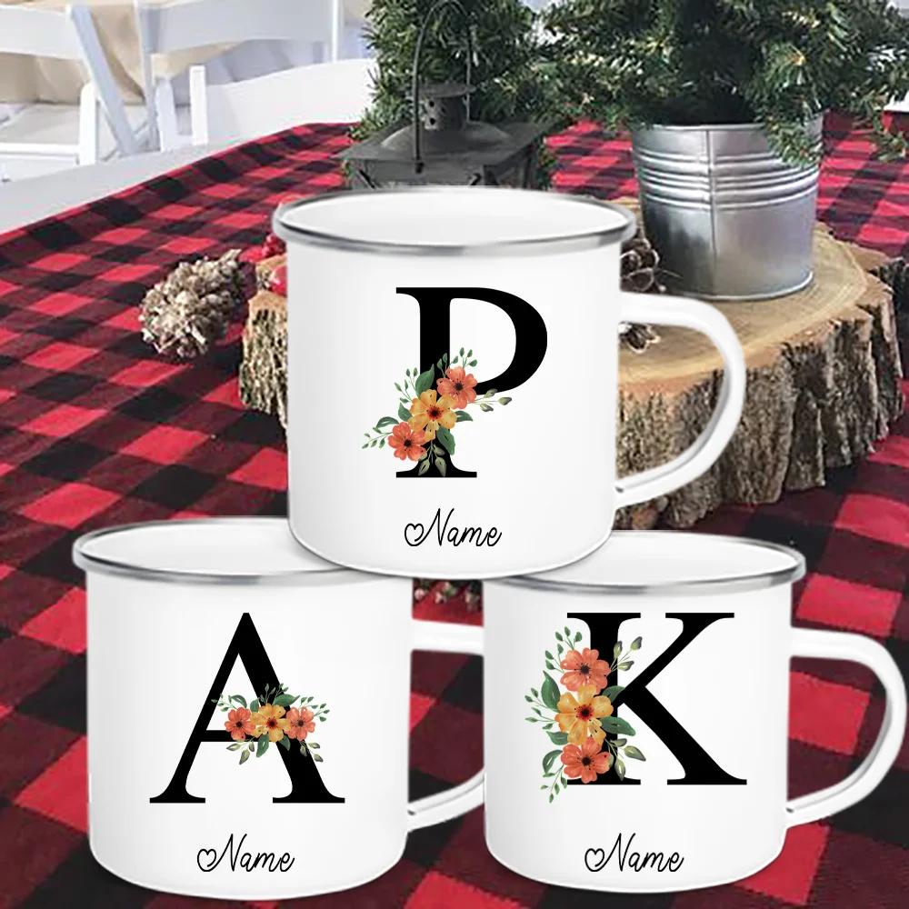 Personalisierte Namens Emailletasse Benutzerdefinierte Blume Buchstabe Alphabet Tasse Camping Henkel Kaffee Tee Milch Tassen Festliche Geburtstagsgeschenke