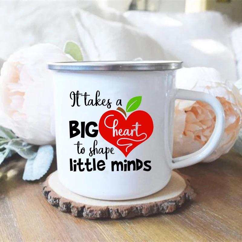 Es braucht ein großes Herz, um kleine Geister zu formen Lehrer Emaille Tasse Kreativer Lehrer Schule Wasserbecher Kaffeetassen Lehrertagsgeschenke