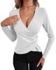 Gönnen Sie sich einen eleganten und sexy Stil mit diesem asymmetrischen V-Ausschnitt-T-Shirt, entworfen für die moderne Frau.. Dieses schmal geschnittene Oberteil, gefertigt aus einem einzigartigen Small-Pit-Streifenstoff, bietet eine schmeichelhafte Silhouette, die Ihre Kurven betont.. Mit einem einfarbigen Muster und langen Ärmeln vereint es nahtlos Komfort mit Raffinesse und ist somit eine vielseitige Ergänzung für Ihre Garderobe sowohl für Tages- als auch für Abendlooks.