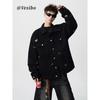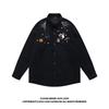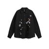 Kisko Design-Inspired American-Style Sticker Print Frayed Long-Sleeve Shirt for Men and Women, Trendy Brand, Cool and Loose-Fitting Shirt Jacket