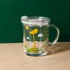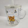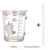 Hochwertiger Kinder-Trinkbecher mit Strohhalm, Deckel und Griff, niedlicher Glasbecher mit Skala für Wasser, Tee, Milch, Kaffee, Elefanten-Cartoonmuster