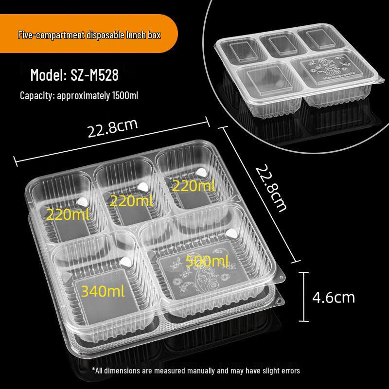 Einweg-Takeaway-Essensboxen mit 5 Fächern und Deckeln