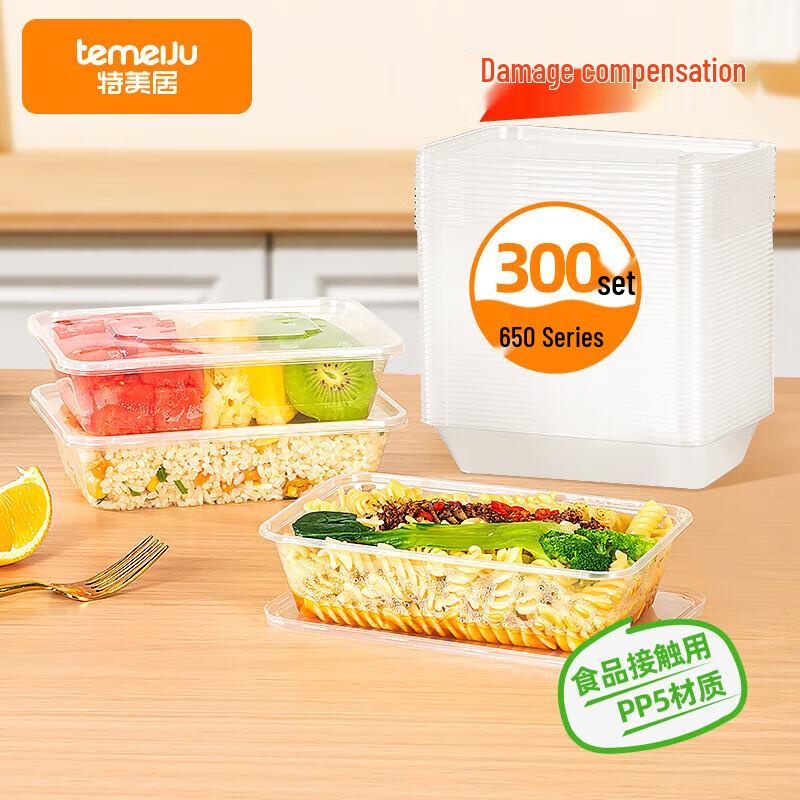 Temeiju Disposable Rectangular Food Containers with Lids (300-Pack)