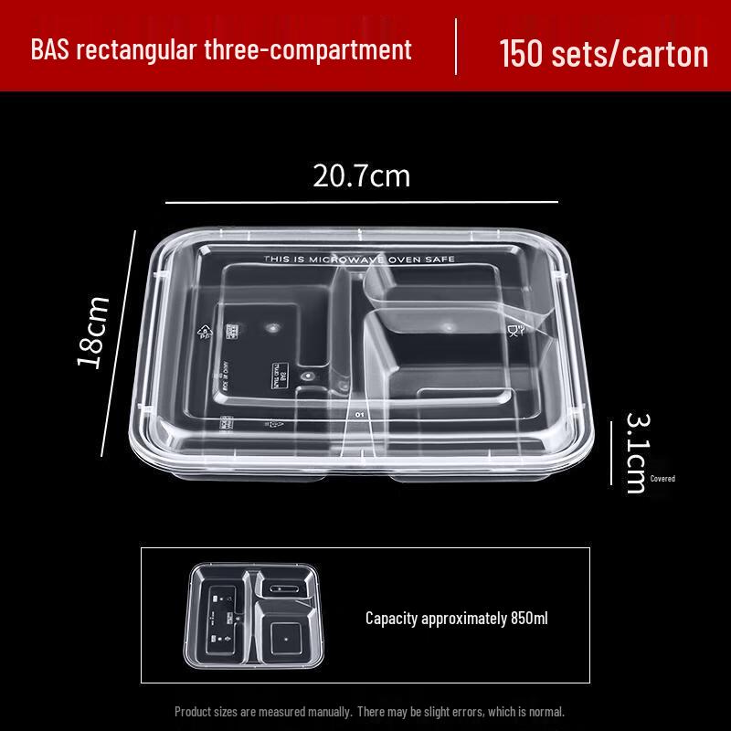 HANDUNYOU Einweg-Rechteck-Lebensmittelbehälter mit 3 Fächern
