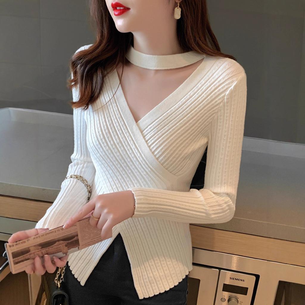 Neck sweater women's niche inner cardigan autumn and winter new long-sleeved knitted sweater