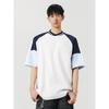 Retro Color-Blocked T-Shirt with Ribbed Neckline, Drop Shoulder Sleeves, Loose Fit, Air Layer, Contrasting Color Short-Sleeve Men's Summer Wear