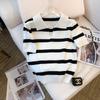 Damen Gestreiftes V-Ausschnitt Kurzarm Eisseide Stricktop