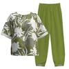 Der Anzug ist mit Rundhalsausschnitt, Blumendruck, halben Ärmeln, Knöpfen, elastischer Taille entworfen und für den täglichen Gebrauch geeignet.