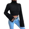 Damen Cropped Pullover Hoher Kragen Ausgestellter Langer Ärmel Einfarbig Slim Fit