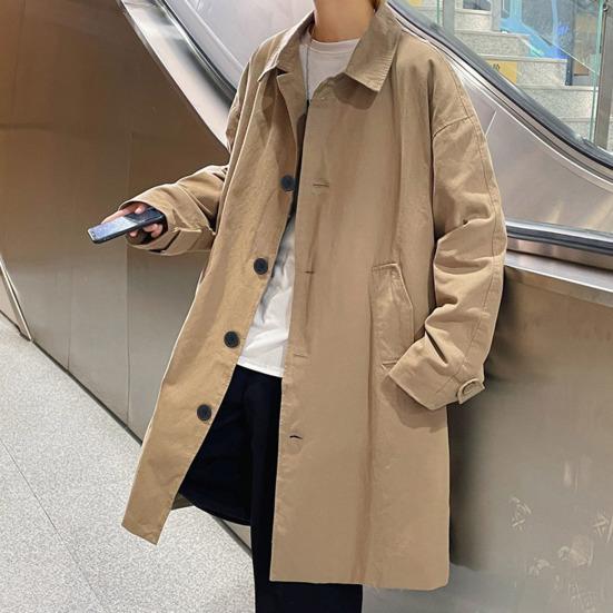 Herren Windbreaker Mantel Revers Langarm Knopfleiste Trenchcoat mit Taschen