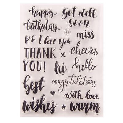 Klarstempel Englische Wörter Transparenter Siegelstempel Geburtstagswünsche Silikonstempel für Kartenherstellung Scrapbooking Dekoration