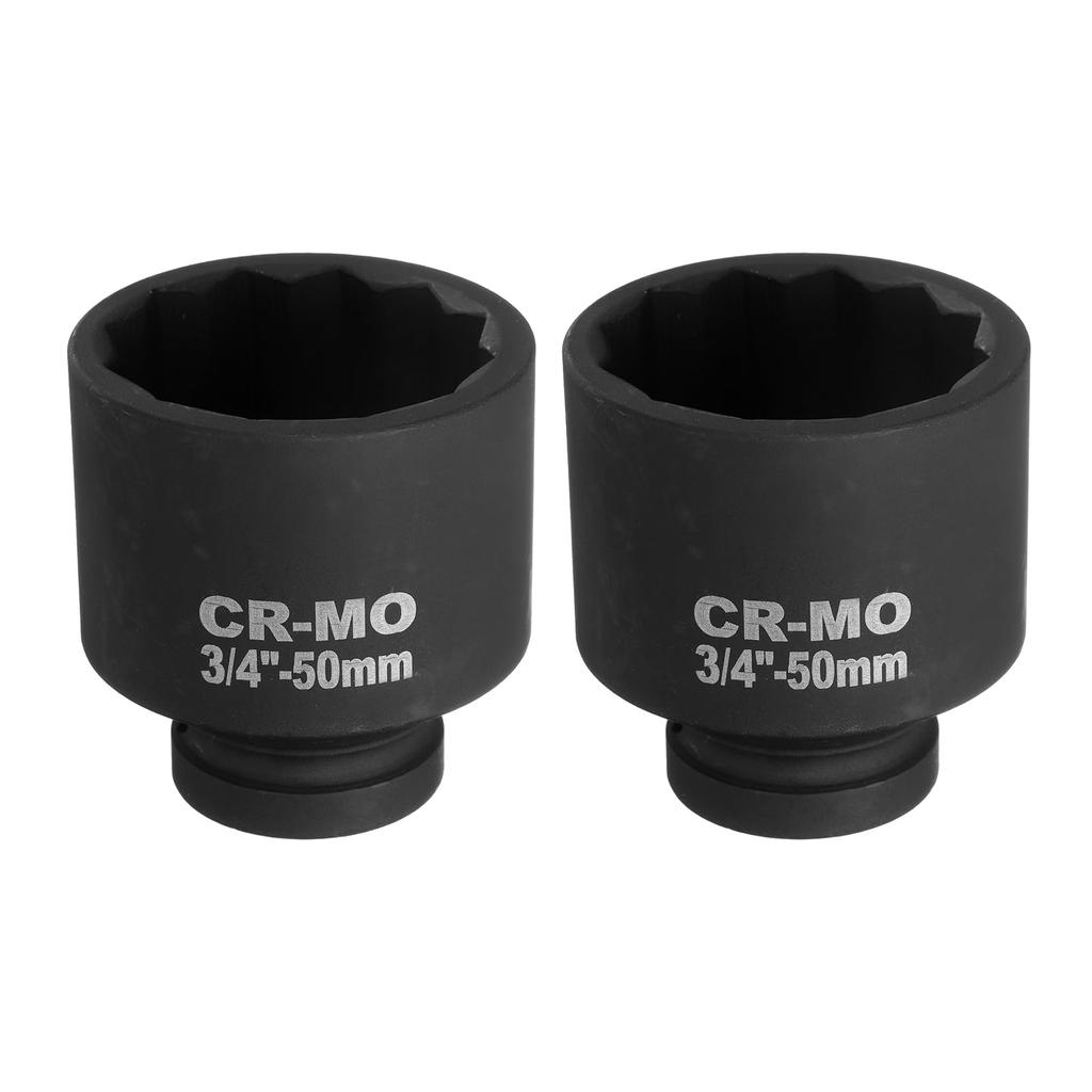 [Size] Drive: 3/4", 12-Point Socket Size: 50mm, Overall Length: 75mm / 2.95". Sockets are laser-marked with size labels, making it easy to find and retrieve the socket you need.