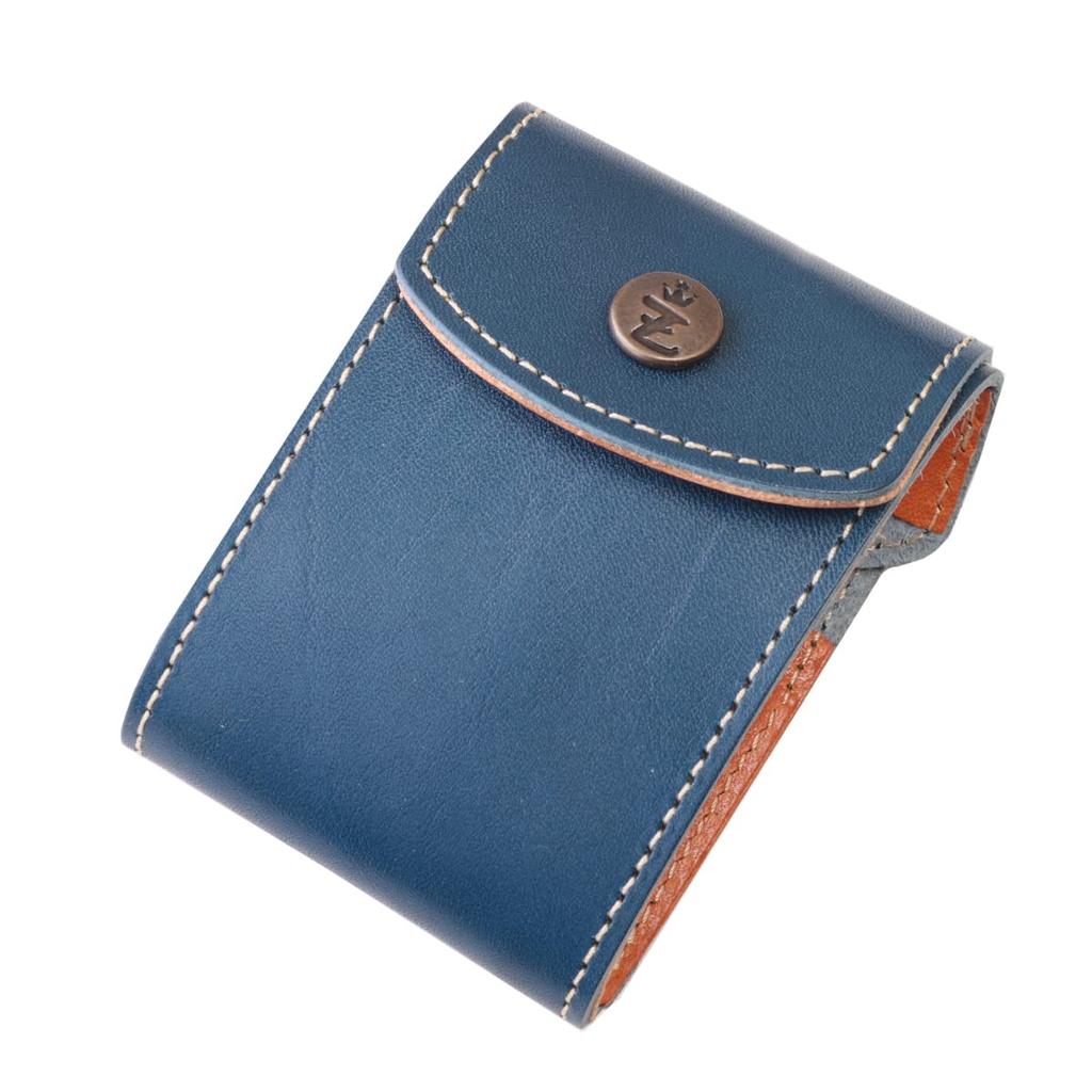 ZARIO-GRANDEE - Genuine Tochigi Leather Coin Purse, Smart Coin Case, Mini Wallet, Holds Bills and Cards, Made in Japan [ZAG-0042] (Navy x Camel)