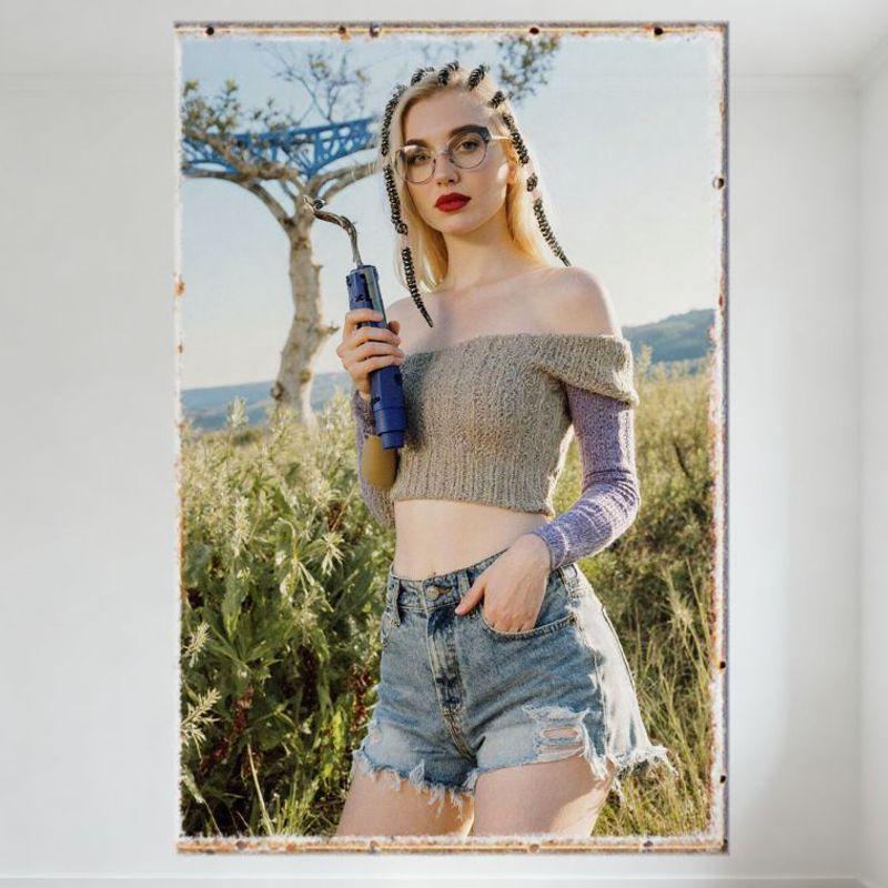 Sexy Blonde Woman Vintage Retro Tin Sign, Rural Grassland Scene Metal Poster for Bar Home Wall Decor, 8x12 Inch Rustic Aesthetic