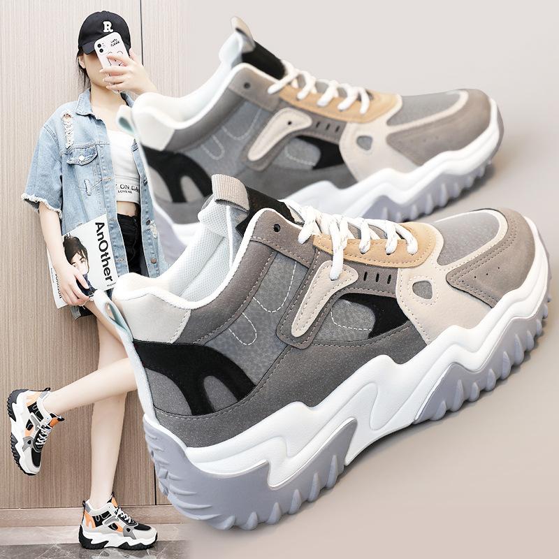 Neue farblich abgestimmte modische Freizeitschuhe 2025 Herbst vielseitig atmungsaktiv Dad-Schuhe erhöhte Sohle Student