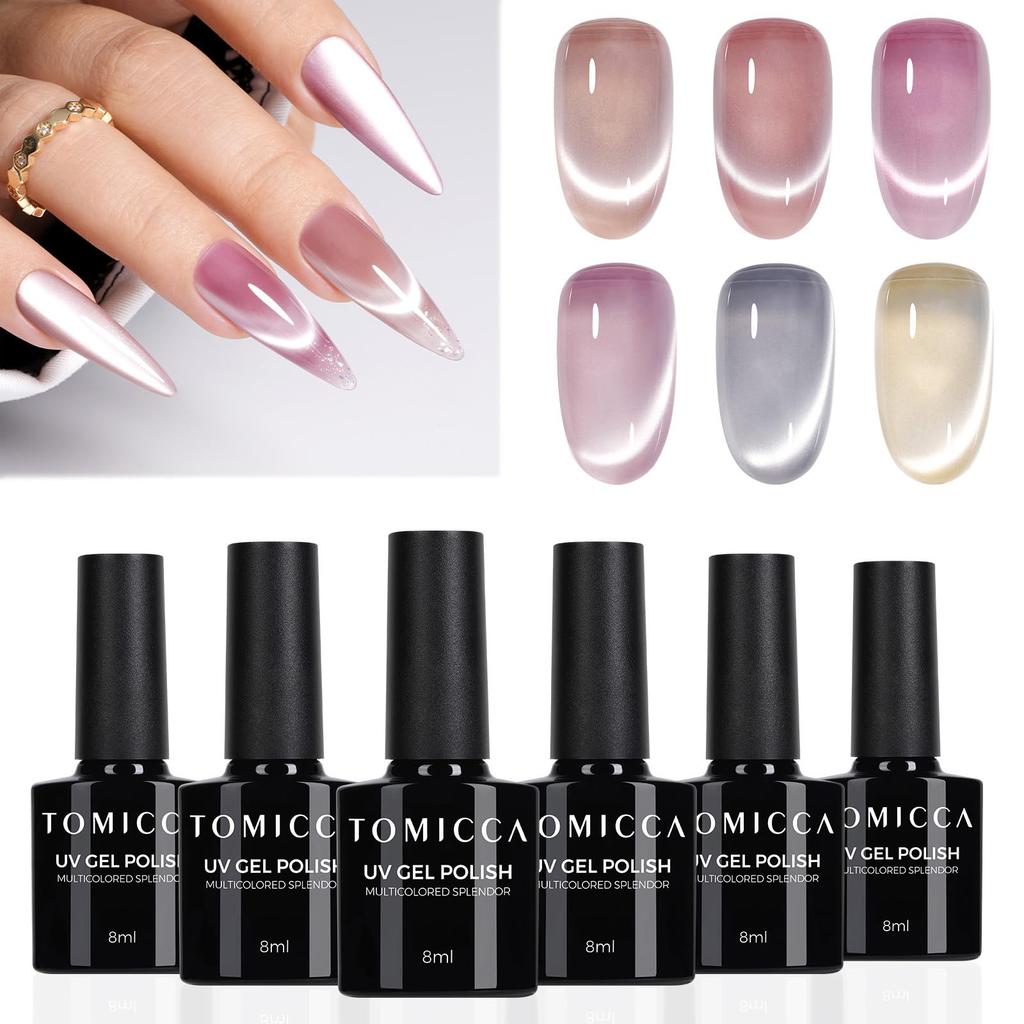 TOMICCA Magnetisches 6-Farben Gel-Nagellack-Gel, Magnetische Gelnägel, Weiß, Klar, Cat-Eye-Gel, UV/LED-kompatibel