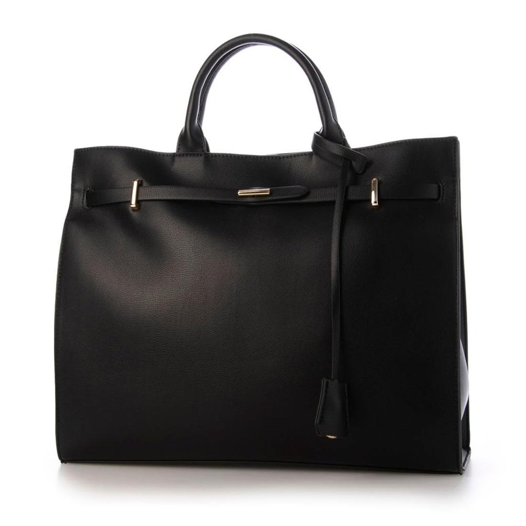 This 2-way tote bag features a decorative belt on the front and a thin twisted metal fitting, creating a delicate and feminine look.