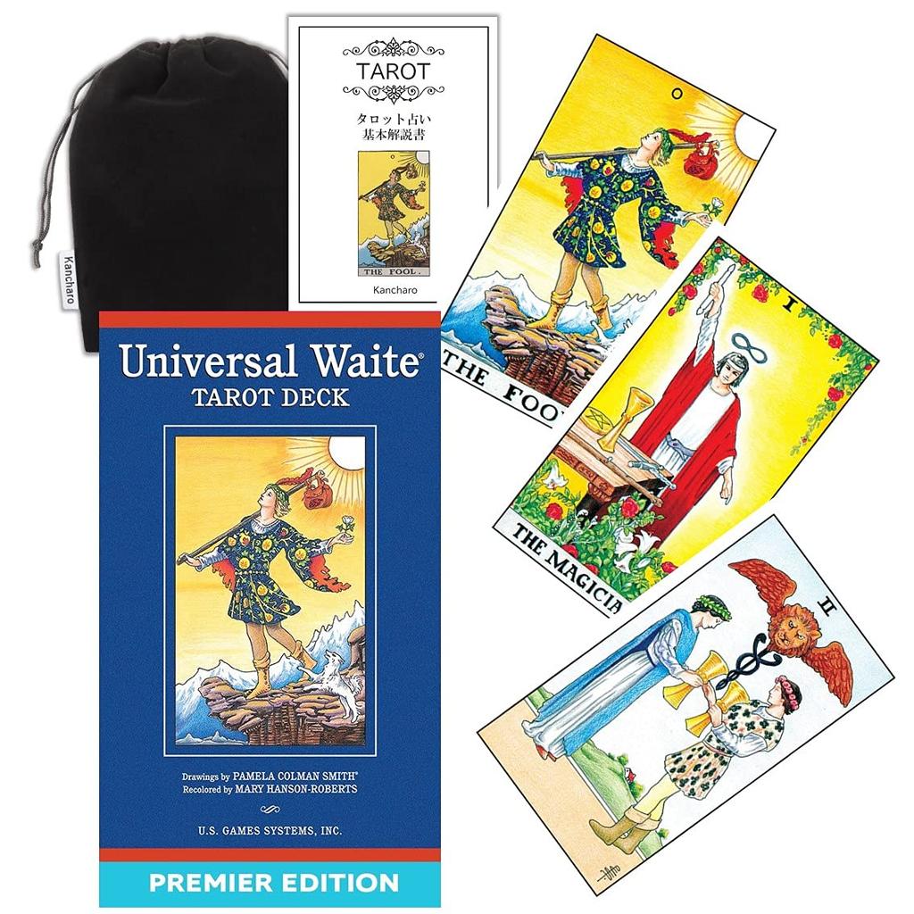 Kancharo 78-Card Tarot Set [Universal Waite Tarot Premier Edition] Includes Japanese Tarot Card Instructions & Pouch (Authentic)