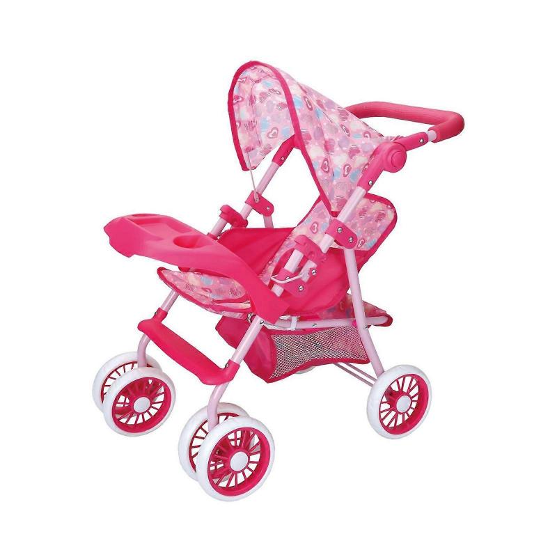 Kinder Rollenspiel Baby Kinderwagen Schiebewagen für Kinder mit Eisenrahmen Herzmuster Rollenspielzubehör
