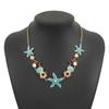 Summer Bohemian Wind Oil Drip Starfish Shell Necklace Beach Vacation Wind Diamond Pearl Collarbone Chain