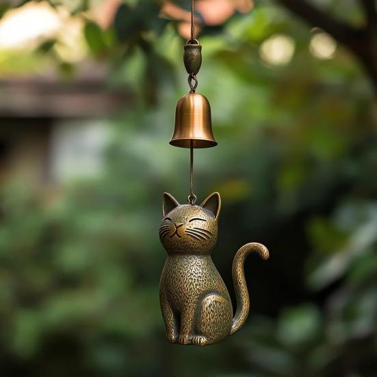 Handgemachte Vintage Katzenästhetik: Exquisit handgefertigt mit einzigartigem Vintage-Design und wunderschöner künstlerischer Patina, verleiht das niedliche Kätzchen-Windspiel unverwechselbaren Charme und wird zu einem Blickfang, der sowohl drinnen als auch draußen die Aufmerksamkeit von Familie und Freunden auf sich zieht..