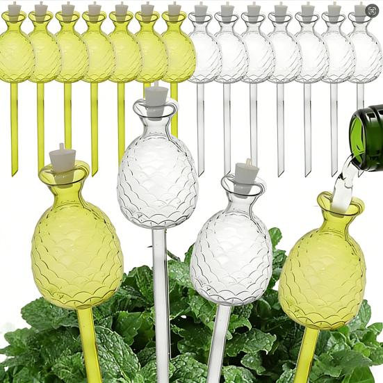 Diese Ananas-Selbstbewässerungszwiebel vereint Funktionalität mit charmantem Design und sorgt mühelos dafür, dass Ihre Pflanzen gesund und hydratisiert bleiben.. Inspiriert von der Ananaspalme, verleiht ihre einzigartige Form Ihrem Garten oder Innenraum eine dekorative Note.. Füllen Sie einfach die transparente Kugel mit Wasser, drehen Sie sie um und stecken Sie den Nagel in die Erde in der Nähe Ihrer Pflanze..