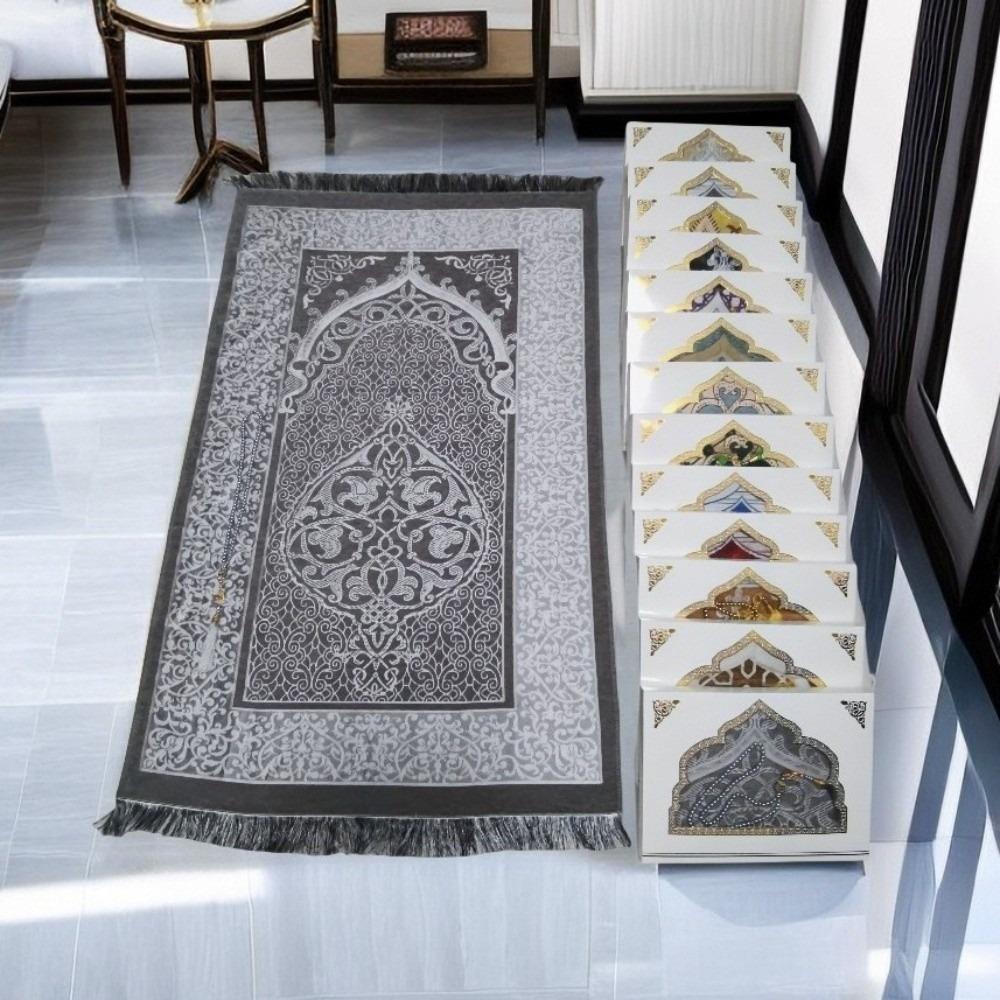 Printed Floor Mat 70x110cm Muslim Prayer Rug Rectangle Non-slip Prayer Mat Set with Prayer Beads Foldable Janamaz Sajadah Eid