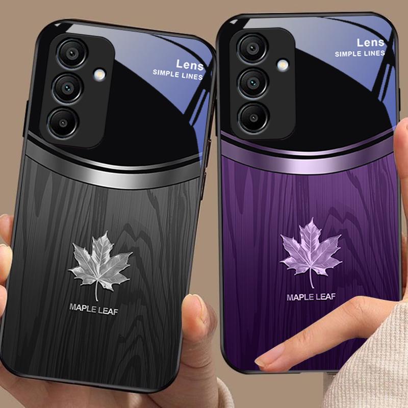 Holzmaserung Ahornblatt Für Samsung Galaxy A15 5G 54 4G 51 50 24 35 90 71 12 51 53 52S 80 22 34 Schwarz Gehärtetes Glas Handyhülle