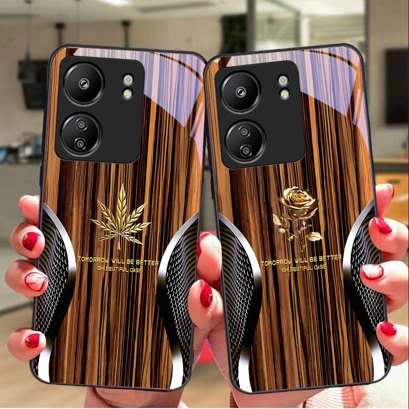 Holzmaserung Schlange Für Xiaomi Redmi 13C Note13 12 Pro Plus 5G Note 9 13T Pro POCO X6 F5 F6 Schwarz Gehärtetes Glas Handyhülle
