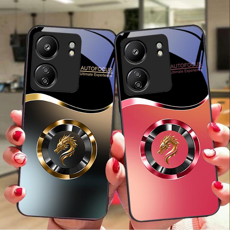Verlauf Kreis Drache Für Xiaomi Redmi 13C Note13 12 Pro Plus 5G Note 9 13T Pro POCO X6 F5 F6 Schwarz Gehärtetes Glas Handyhülle