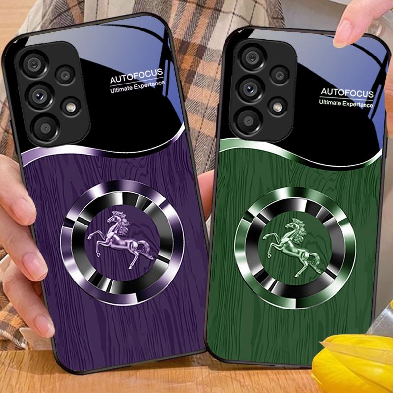 Holzmaserung Pferd Für Samsung Galaxy S 8 9 10 20 Plus 21 FE 22 23 24 Ultra S7 Edge Schwarz Gehärtetes Glas Handyhülle Hartschale