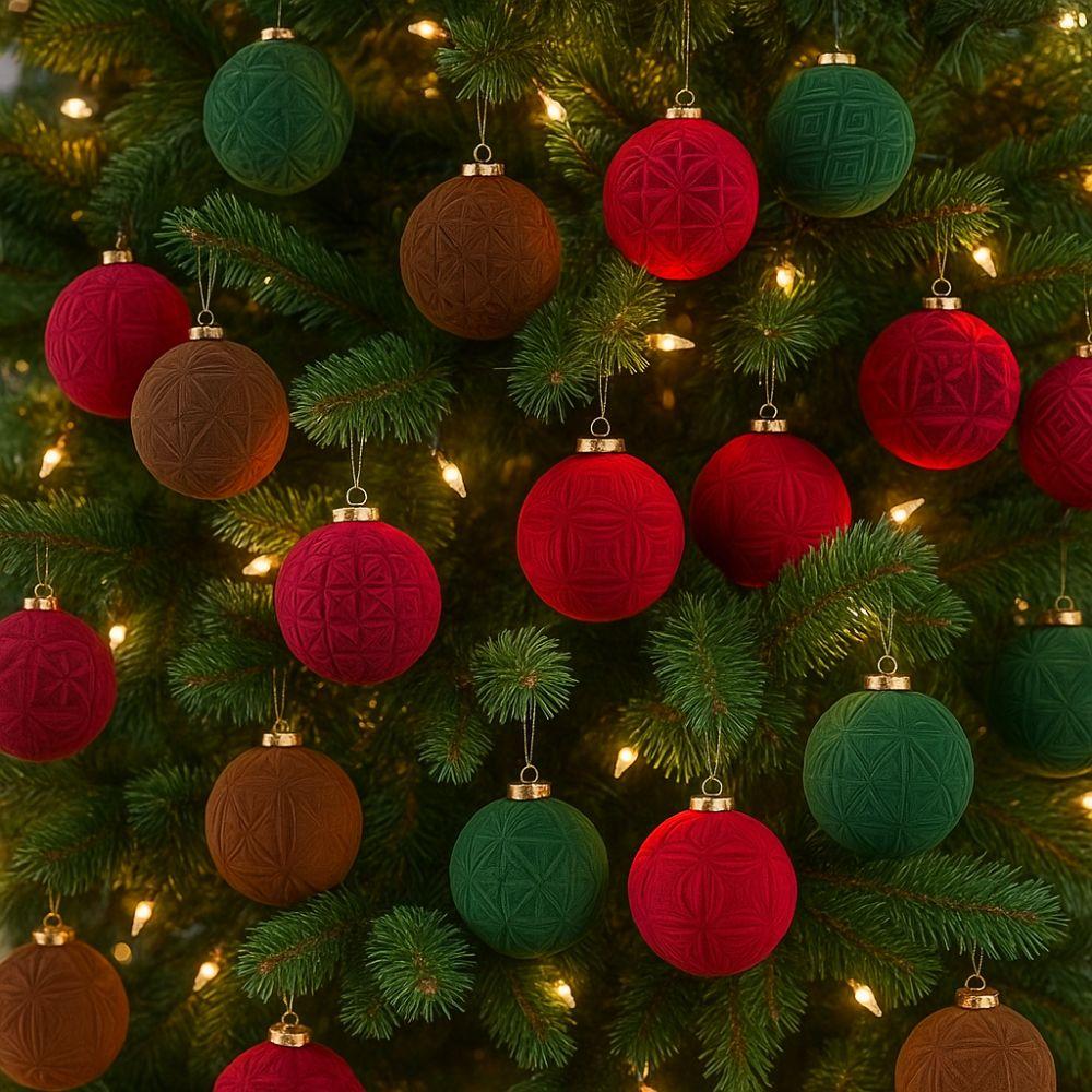 9pcs 10cm Christmas Hanging Balls Flocking Vintage Velvet Christmas Balls Shatterproof Plastic Xmas Tree Pendant