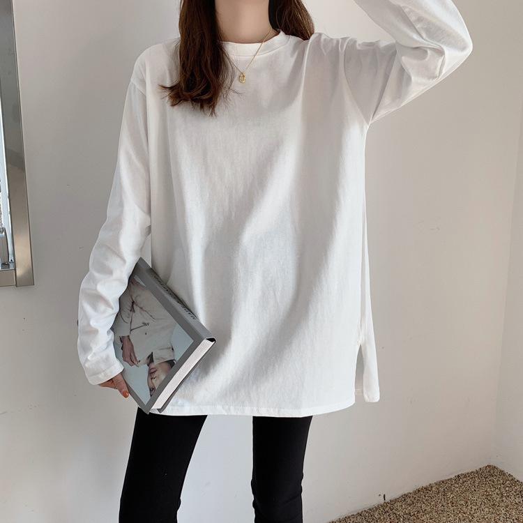 White long-sleeved T-shirt women's autumn bottoming shirt 2025 new Korean version loose medium and long velvet top
