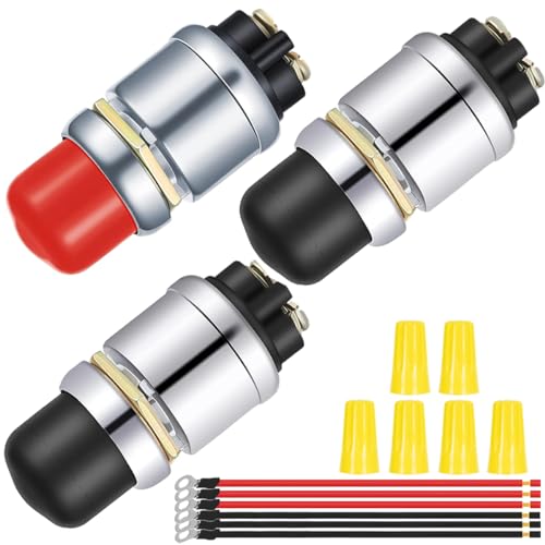 3pcs Red/Black Push Start Button Switches 50A Heavy Duty Momentary Push Button Switch