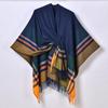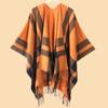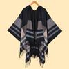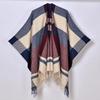 Damen Herbst/Winter karierter Jacquard-Schal mit Fransen, Umhang