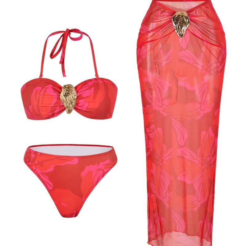 Europäischer und Amerikanischer Neuer Batikdruck Split Bikini Badeanzug Strandrock Dreiteiliger Badeanzug